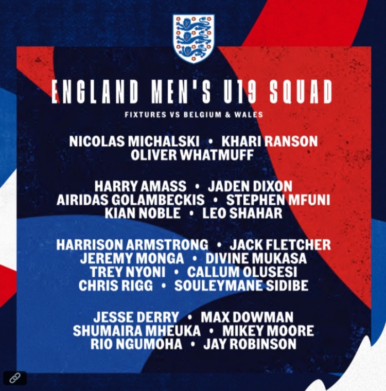 英格兰U19队名单:15岁道曼、尼奥尼、恩古莫哈、杰克-弗莱彻入围